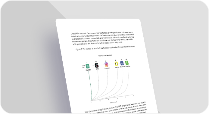 ChatGPT's meteoric rise to becoming the fastest-growing application in human history is indicative of a fundamental shift in the business world. Generative AI has the potential to dramatically enhance productivity and reduce costs, ultimately transforming the way businesses operate. Experts believe that this is just the beginning of what is possible with generative AI, and its transformative impact cannot be ignored. Figure 3. The number of months it took popular applications to reach 100 million users. New Generative AI applications, such as ChatGPT, Bing AI, and Jasper, are now capable of performing tasks that were once considered to be exclusive to humans. These tasks include writing blog posts, designing, writing computer code, and even contributing to the creation of video games and movies. Additionally, they can quickly summarize vast amounts of data and make it accessible through language, which experts believe will fundamentally transform how businesses operate. These new Generative AI tools are user-friendly and can be used by anyone, including individuals without any technical background or specialized machine learning skills. This means that business leaders can start utilizing these tools today to gain a competitive advantage. Gen AI: Revolutionizing the Way Enterprises Work 5