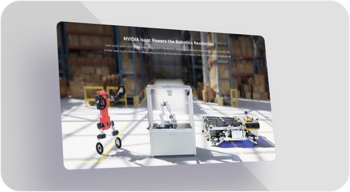 NVIDIA Isaac Powers the Robotics Revolution From smart automation in manufacturing to last-mile delivery, robots are becoming more ubiquitous in everyday life. NVIDIA Isaac is our platform for accelerating and enhancing robotics—from development to simulation to deployment.