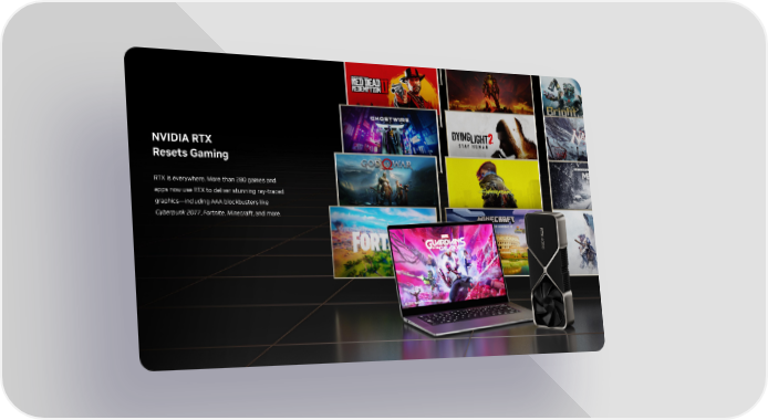 NVIDIA Story Page 6 Page 8NVIDIA RTX Resets Gaming RTX is everywhere. More than 280 games and apps now use RTX to deliver stunning ray-traced graphics—including AAA blockbusters like Cyberpunk 2077, Fortnite, Minecraft, and more.